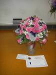 We were very fortunate to have 3 very talented ladies from the Vermont Floral Art Group demonstrate at our May meeting. We are thankful to Myrna, Marion and Barbara who thrilled us all by their floral creations. For bench work we had “Mother’s day posy in a bridie holder” and “Decorated Bottle” for wired work. (see below for photos).