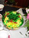At the Waverley Garden Club birthday meeting on the 3rd of May, Noreen and Elizabeth did a beautiful floral demonstration. Noreen was dressed up as Hyacinth Bucket and Elizabeth was her friendly neighbour who was invited to her tea party. They made a beautiful autumn design, floral cup cakes, floral birthday cake, a trifle, fish course and a candelabra to decorate the table.