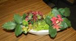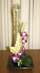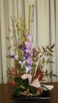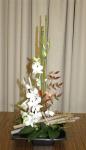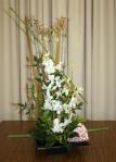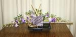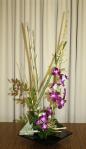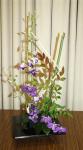 At the April meeting we had an impose night where we created very interesting oriental designs from the mystery bags filled with orchids, foliage, chopsticks, tatami sticks and bamboo. A big thank you to Elizabeth and Jenny for gathering all the supplies for us to be creative. The bench was filled with “Just Foliage” designs and “stem, spike or truss” from the garden.