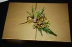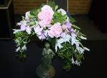 At our October meeting we had a workshop on ‘ínverted crescent’. Thank you Noreen for showing us how to make such a lovely graceful design. ‘My Choice’ was the bench title and we had ‘ A decorated Gift Box’ for wired work. A stem, spike or truss was the horticultural item from the garden.