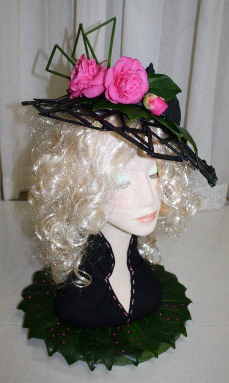 “Hat made from horticultural material featuring Camellias”