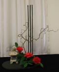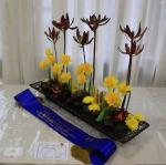 The gold ribbon for the Victorian Winter Floral Art Championship titled “Let’s Twist Again” was won by our own president Noreen Donovan for her beautiful contemporary design. The blue ribbon for the best exhibit in Floral Art was won by Sharon Cunningham for the best “design for a corporate luncheon”. Noreen also won the President’s Trophy and the Beth Smith Perpetual Trophy for best modern/contemporary arrangement for “succulents and structures”. Deb Collett won the Camellias Victoria Award for the best “Camellias with style”. Shown below are the beautiful prize winning designs.
