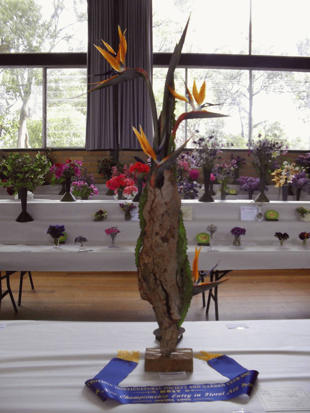 Flowers in an art sculpture – Croydon Spring Show 09 – Blue Ribbon