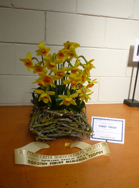 An arrangement in a basket featuring daffodils – Ferny Creek Spring Show 2015