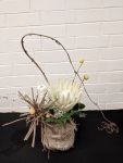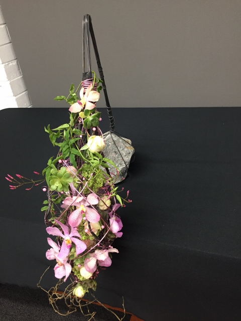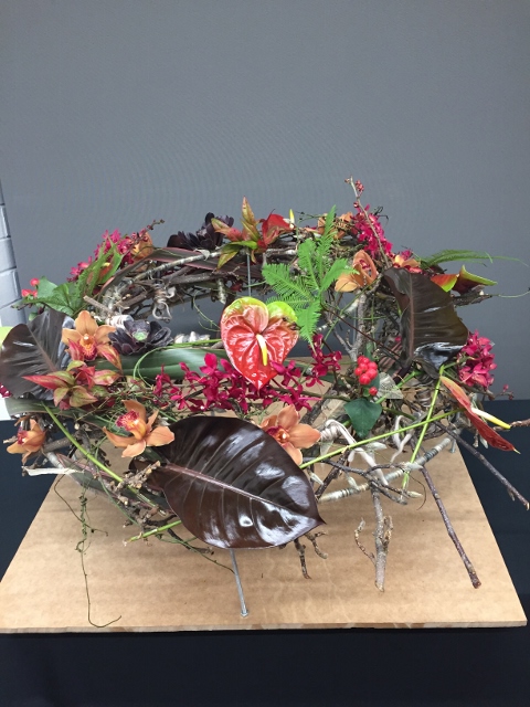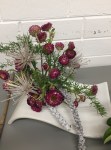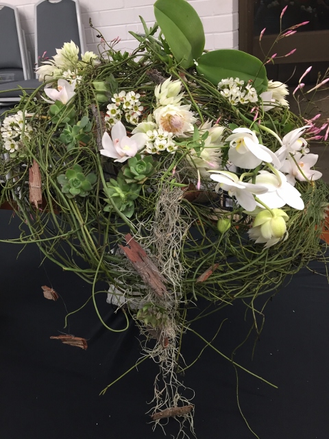 In October, we celebrated our 57th birthday and members from other floral art groups and Waverley Garden Club joined us. The wonderfully creative Janet Alesich was our guest demonstrator and we watched her make four spectacular arrangements, each one using different types of materials and techniques. This was followed by a delicious supper which we all enjoyed. There was no bench work this month.