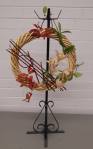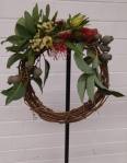 In September, we had a workshop on making wreaths. Elizabeth and Rosie showed us different ways of making wreaths – some with oasis, cane, willow, sticks and wires. Then we all had fun making wreaths with flowers, foliage, gum nuts, pine cones and moss. ‘A design using bundling’ was the title for the bench and ‘stem, spike or truss’ was the horticultural item.