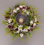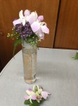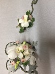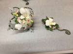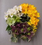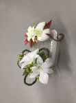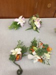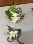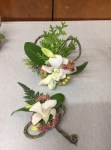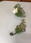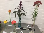 At the March meeting we made wrist corsages and buttonholes whilst learning the gluing technique. Thanks to Rosie who showed and guided us in making interesting shapes with rustic wires before gluing flowers and leaves to create beautiful pieces. For the bench the title was ‘rhythm and flow’ and ‘stem, spike or truss’ was the horticultural item.