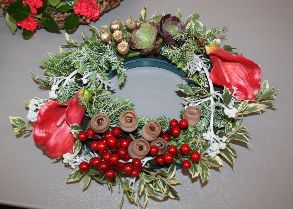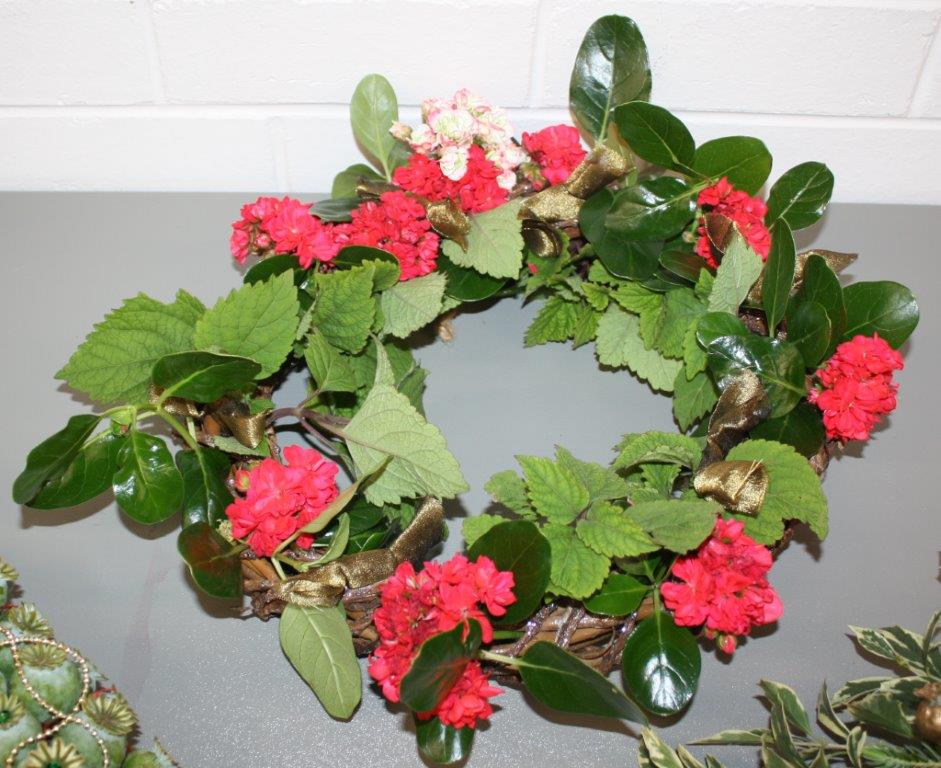 We ended the 2018 year with an informative evening led by Noreen. At the request of some of our members, Noreen showed us many samples of foliage and made suggestions on various ways in which we can use them in our floral art designs. It is easier to grow most of these plants at home ready to be used whenever we need them. Being the Christmas meeting, the bench was filled with Xmas wreaths and Sandra Fallu was judged the winner by popular vote.