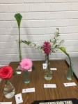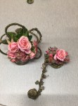Rosie led us in another wiring workshop where we made beautiful wired posies. We learnt the techniques of wiring different leaves and flowers and put them together to make pretty little bouquets. The bench was titled “horizontal designs” which we learnt last month. “Stem, Spike and Truss ” was “from the garden”.