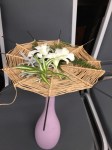 At our June meeting Rosie led us in a workshop making structures. Using the tatami technique we made circular cane structures to be used with flowers and foliage to form floral arrangements. The bench was filled with “design of your choice showing depth”, “buttonhole” for wired work and “Stem, spike or truss” from the garden.